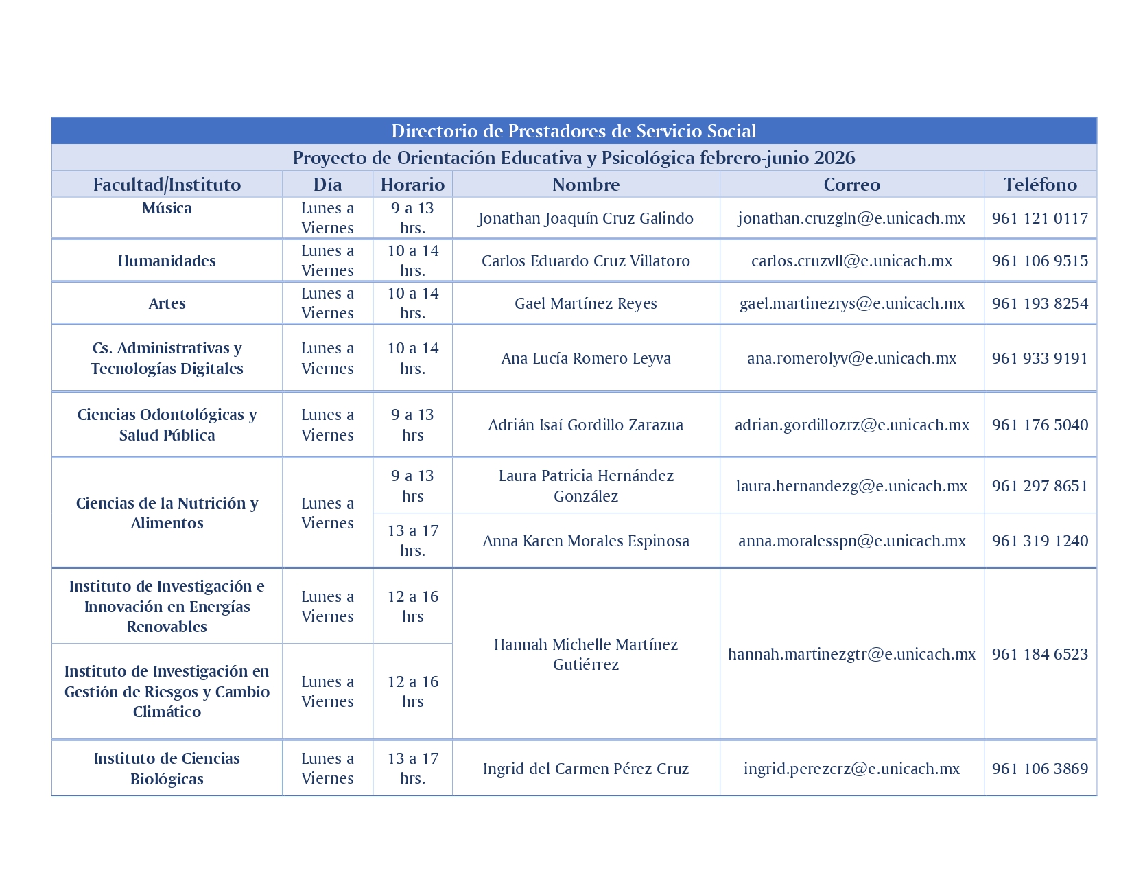 Directorio Responsables de Tutoría